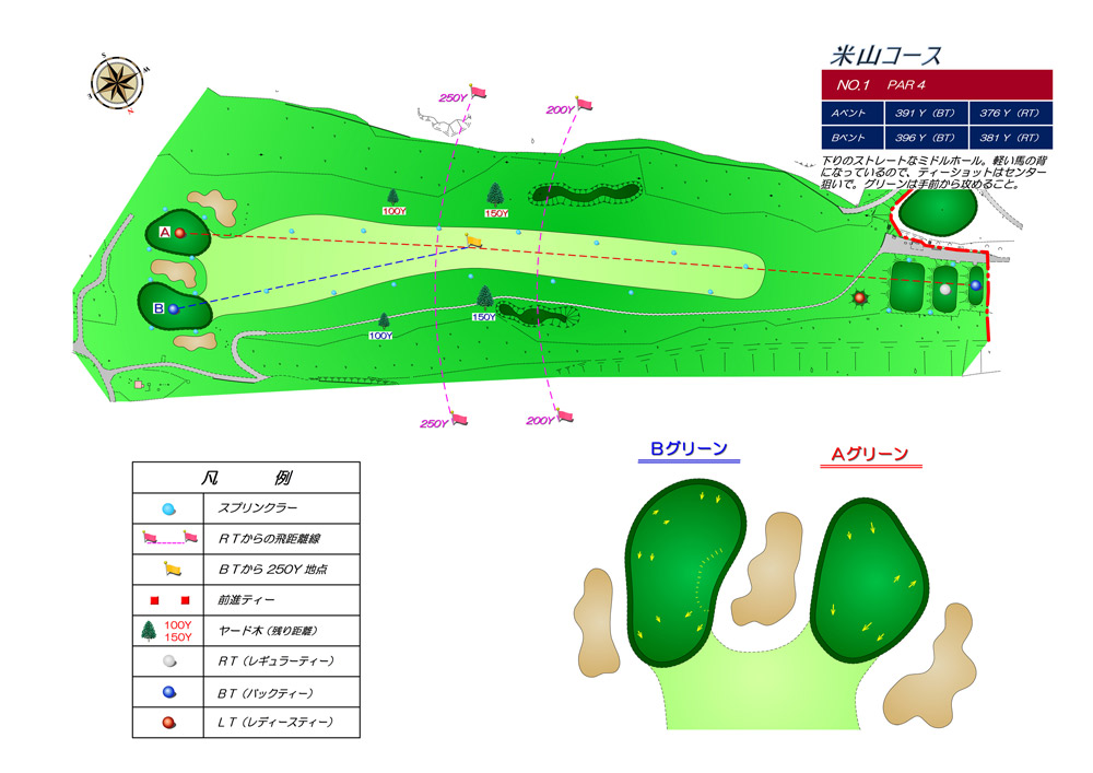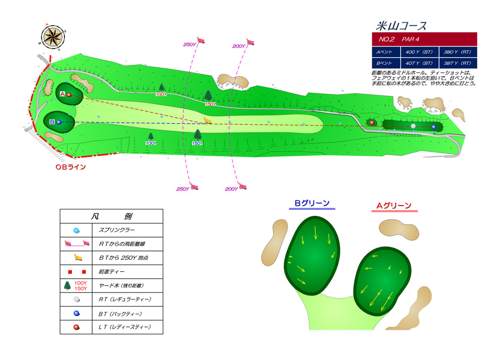 2021年8月にBグリーンをベント芝から夏場に強いバミューダ芝へ移行し、現在は二種類の芝を使用することで