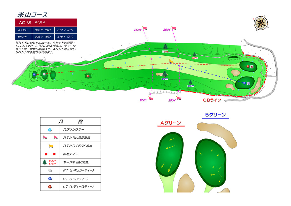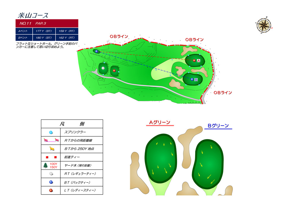 2021年8月にBグリーンをベント芝から夏場に強いバミューダ芝へ移行し、現在は二種類の芝を使用することで一年中、手入れの行き届いたグリーンをお楽しみいただけます。