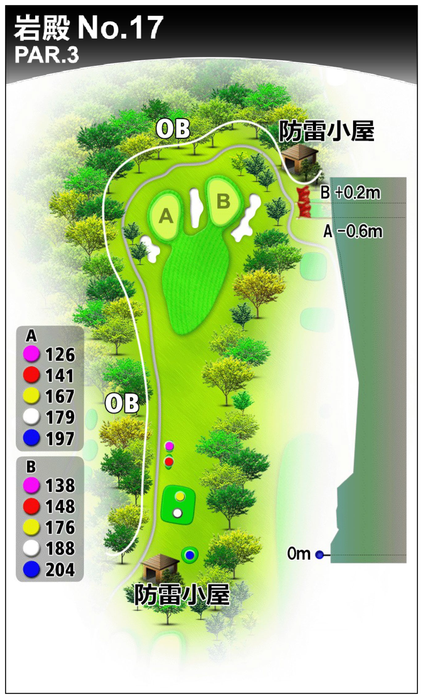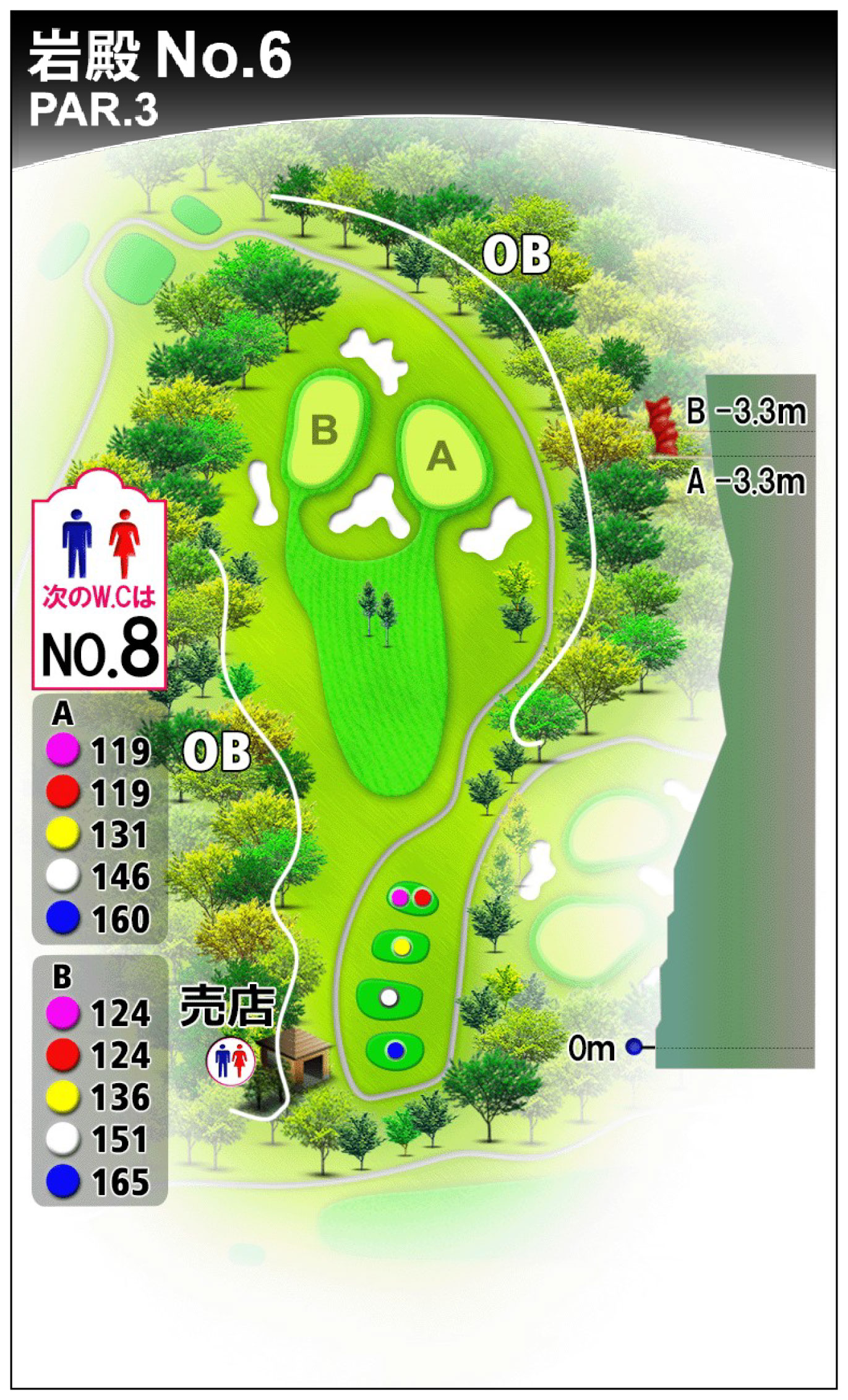 岩殿アウト・イン各スタートホールには練習グリーンが、岩殿バス発着所の下には芝生の上から直接打てるアプローチ練習場があります。